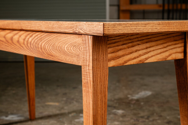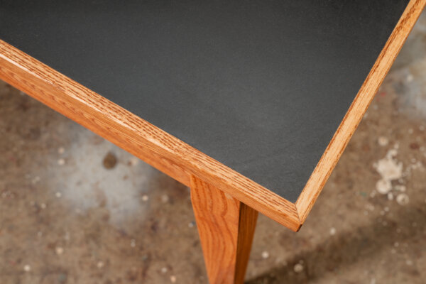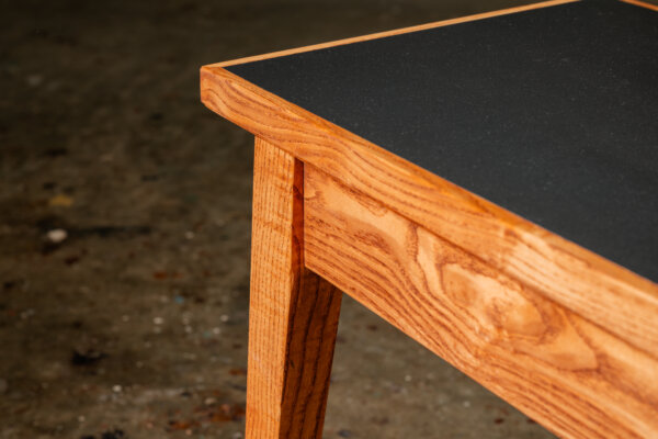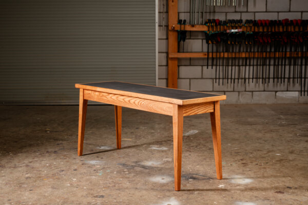 In meiner Werkstatt neu hergestellte Eschenholzbank mit Linoleum Oberfläche.